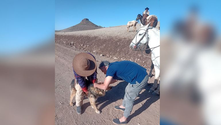 Sergio Gómez, veterinario y conductor de radio vivió una experiencia de intercambio y aprendizaje cuando atendió a los perros, caballos y gatos de la trashumancia del norte neuquino.