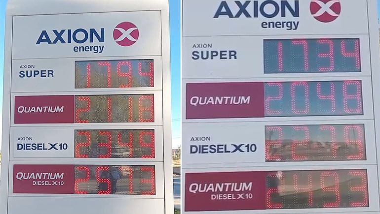 Se trata de la estación de servicio que opera con la firma AXION, ubicada en la intersección de las calles General Roca y Candolle, en el oeste de la localidad. El precio del litro de nafta ya se vende sin el gravamen municipal y, de esta manera, pasó de $1794 a $1734. Mientras que la Quantium, de estar $2118 a $2048 el litro. En tanto que, la Diesel que se cobraba hasta hace poco $2379 pasó a valer $2279. Por último, el precio de Quantium Diesel descendió de $2573 a $2493.