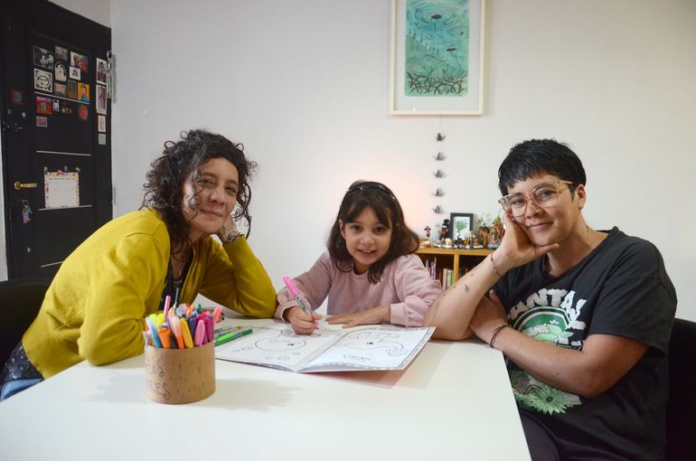 "Yo particularmente tenía miedos en relación a qué iba a pasar cuando se escolarice, cuando se encuentre con sus compañeros, sus compañeras, las seños, las mamás, los papás. Las normatividades hacen que estemos en alerta para que se respeten los derechos de las familias y de las infancias. Sin embargo, ese imaginario se derrumbó automáticamente cuando arrancó la escuela. Si bien en el jardín ella empezó a encontrarse con situaciones de tener que responder preguntas como '¿dónde está tu papá?', que la llevaron a interpelarse, tanto ella como los otros niñes tomaron con mucha naturalidad que la vayan a buscar sus dos mamás y que a los cumpleaños vaya con ellas. A casa vienen sus amiguitas a jugar y está todo más que bien. Yo pensaba que eso iba a ser difícil y hoy me encuentro con una realidad totalmente diferente", celebró.