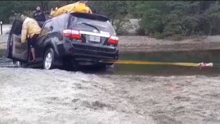 Todo ocurrió el último martes minutos después de las 18, cuando los turistas a bordo de una Toyota, SW4, debieron ser rescatados. Según las autoridades locales, el conductor del vehículo intentó atravesar un arroyo que no se encuentra marcado como ruta autorizada, lo que resultó en la pérdida de tracción y posterior atascamiento del vehículo.