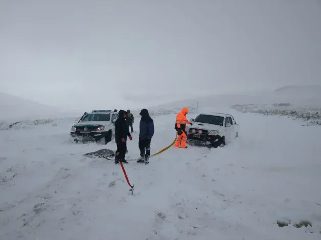 Varias personas que viajaban en tres autos fueron sorprendidas por una tormenta de nieve y viento blanco cerca a Villa Pehuenia. El rescate fue un éxito.