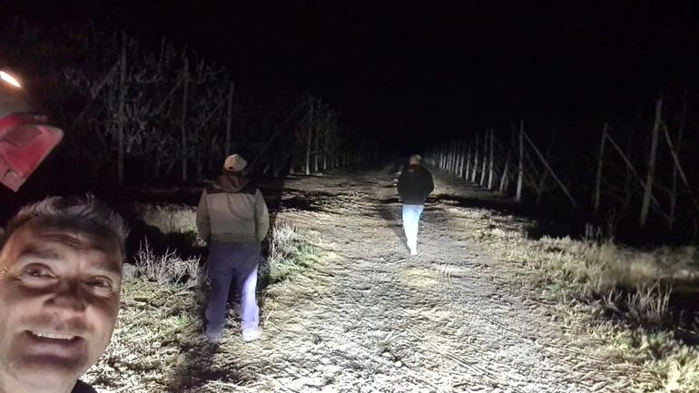 “Fue una helada muy pareja. Cuando pasé por Centenario ya estaba cayendo y uno siempre se guía por los aspersores. Centenario es un poco más frío que en el resto del Valle, pero acá llegó a más de cinco grados bajo cero”, expresó a LMNeuquén Ariel Diomedi, vicepresidente de la Cámara de Productores de San Patricio del Chañar.