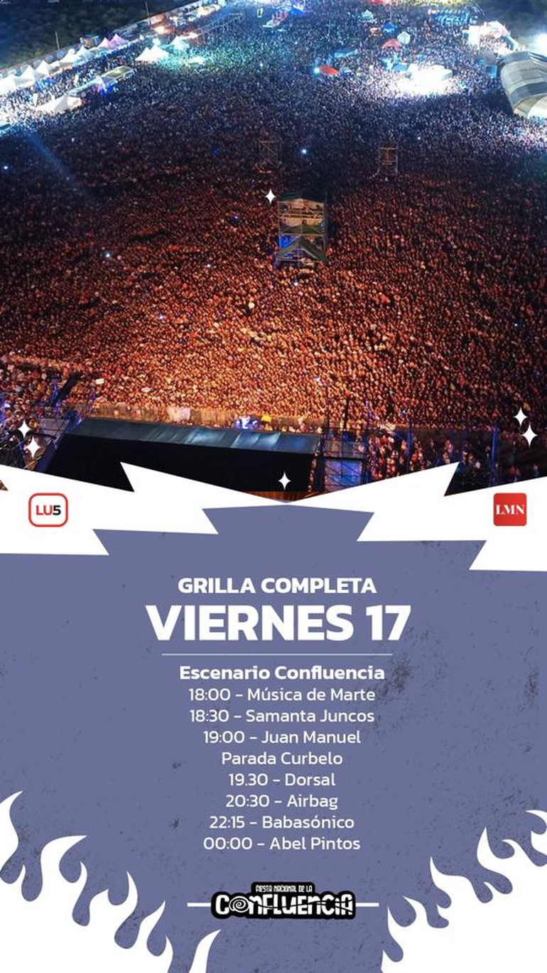 Momentos únicos e irrepetibles se vivieron este viernes en la Fiesta Nacional de la Confluencia. Como Airbag con la versión de ‘Cae el Sol’ acompañado de miles de linternas de teléfono celular. O interpretando el Himno argentino.