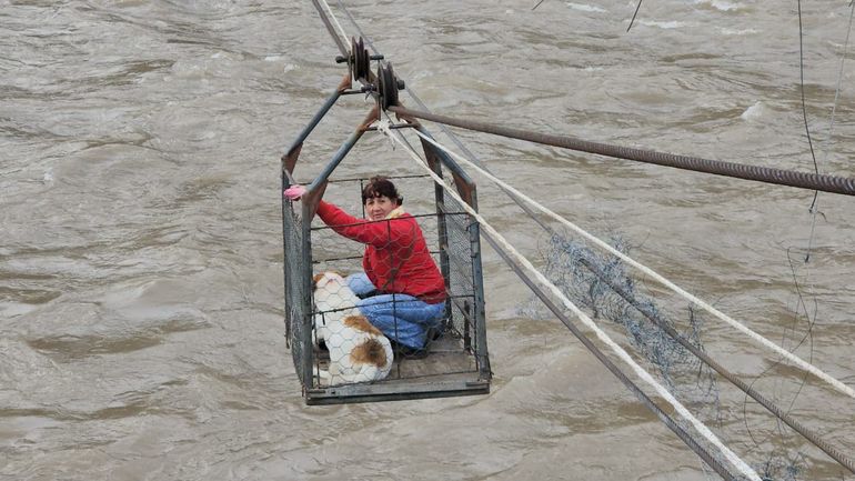 Fueron varios días de angustia hasta que el martes, con el mejoramiento de la situación climatológica y por la pronunciada bajante de las aguas, el personal de la comuna se puso manos a la obra para improvisar un nuevo sistema de comunicación a través de un cajón aéreo tirado por poleas y roldanas.