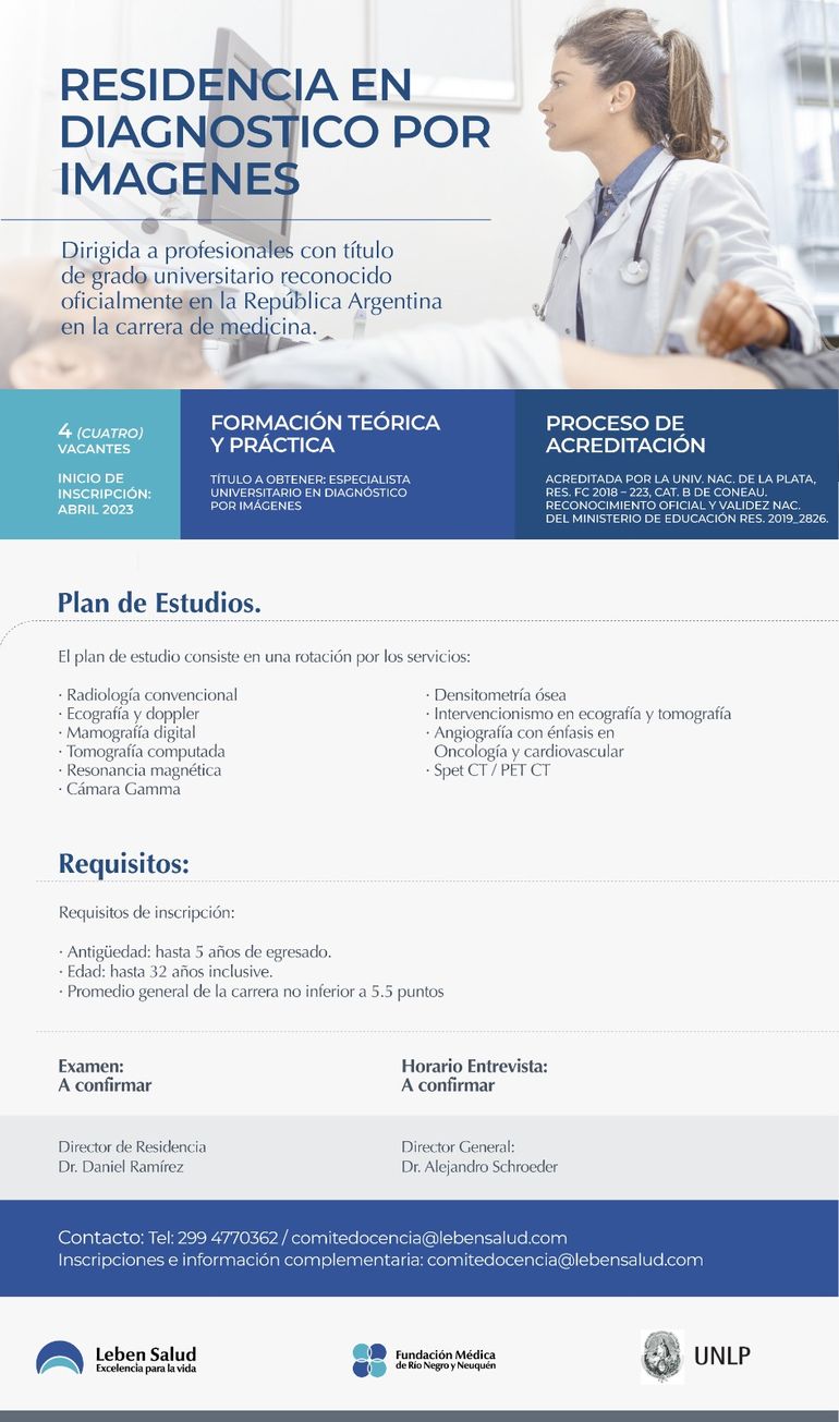 “Leben Salud desde hace más de 30 años se posiciona como sede para la formación de especialistas en diagnóstico por imágenes y con el correr de los años ha impulsado el sistema de residencias de otras especialidades”, señaló la médica especialista.