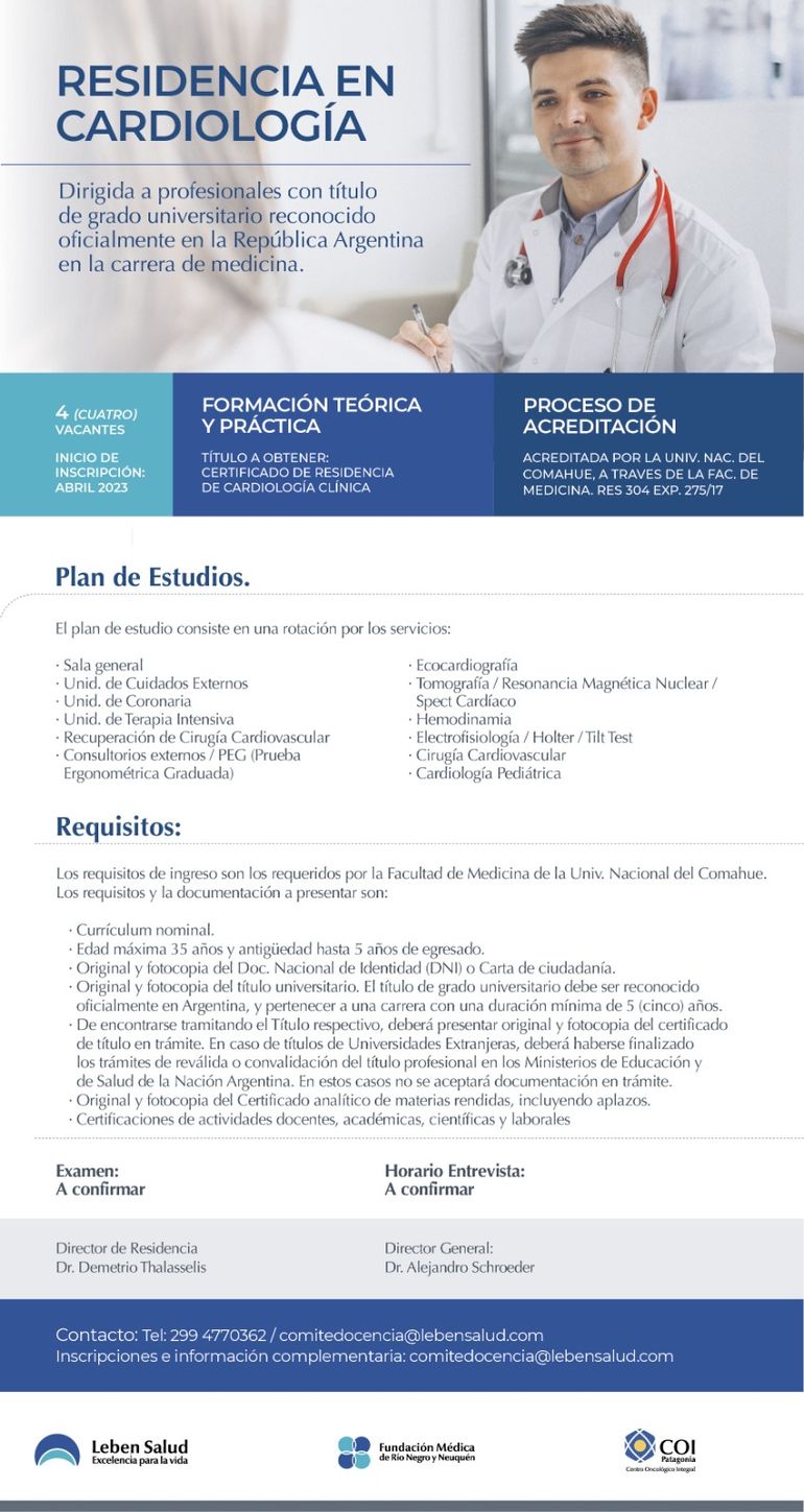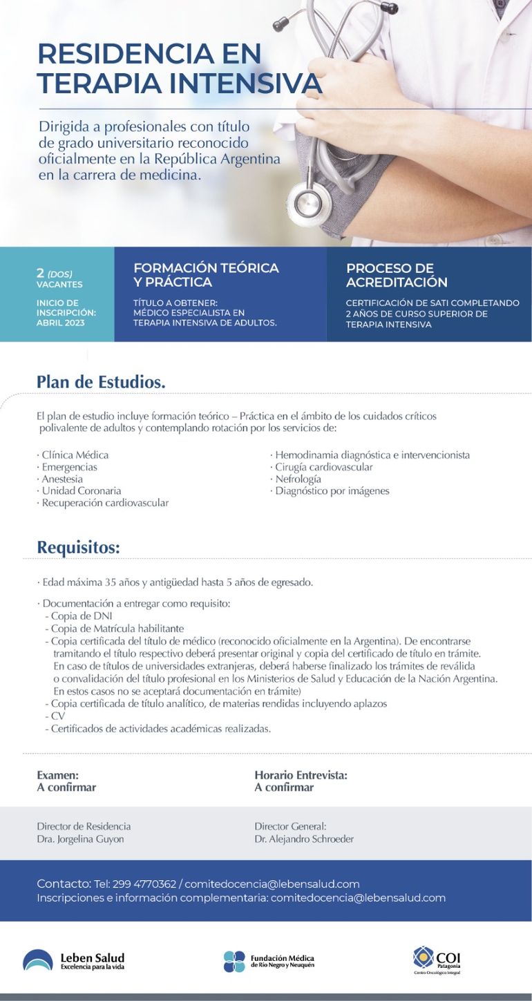 “Con un fuerte compromiso en la formación de profesionales, el comité de docencia e investigación de Leben Salud lleva adelante un proceso de jerarquización de las residencias impulsando la formación continua y la investigación, es por esto que convocamos a médicos interesados a conocer nuestra propuesta académica”, finalizó Guyón.