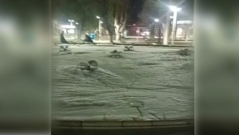 Vandalismo en la plaza de Centenario: esta vez llenaron de espuma la fuente