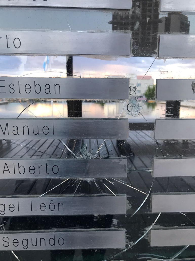 Pintadas esvásticas, mensajes homofóbicos y rotura de cristales. Los actos vandálicos en el cenotafio de Malvinas no cesan.
