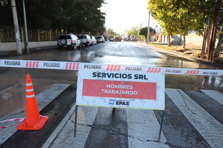 Informaron que en horas de la mañana, antes de comenzar con los trabajos de reparación, sobre las 7, el EPAS se acercó al lugar de la filtración y cortó el tránsito. Sin embargo, el agua llegaba más allá del corte. Por el estado del asfalto, el guardia de seguridad intuyó que esa intersección ya había habido problemas con caños de agua, sin embargo, no lo confirmó.