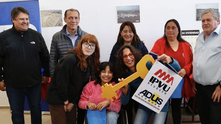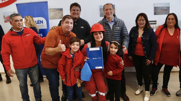 Les entregaron las llaves el gobernador Omar Gutiérrez y el intendente Mariano Gaido. Se demoró la construcción por diversos problemas. A fin de mes hay otra entrega.