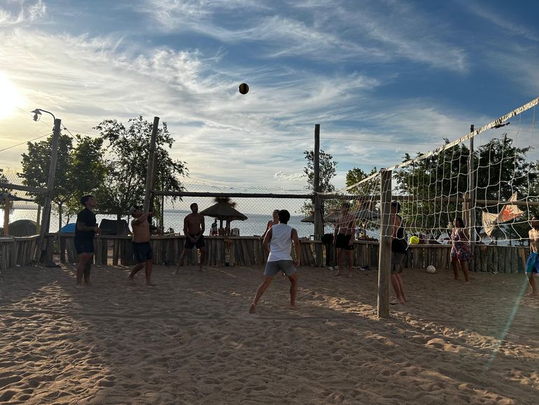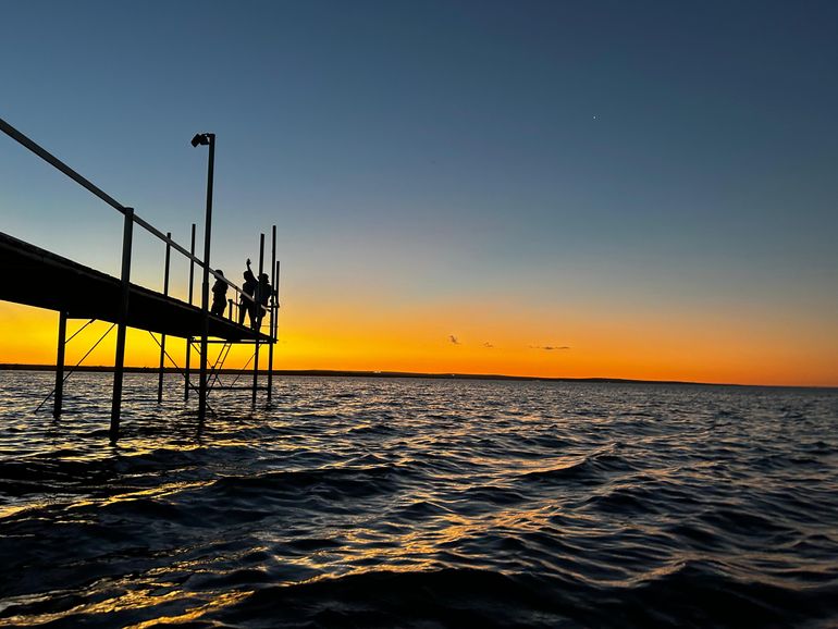 Tienen un muelle de 35 metros, donde los visitantes aman sacarse fotos y desde donde se puede disfrutar la puesta de sol desde el frente. "Tenemos una panorámica espectacular", aseguró el comerciante.