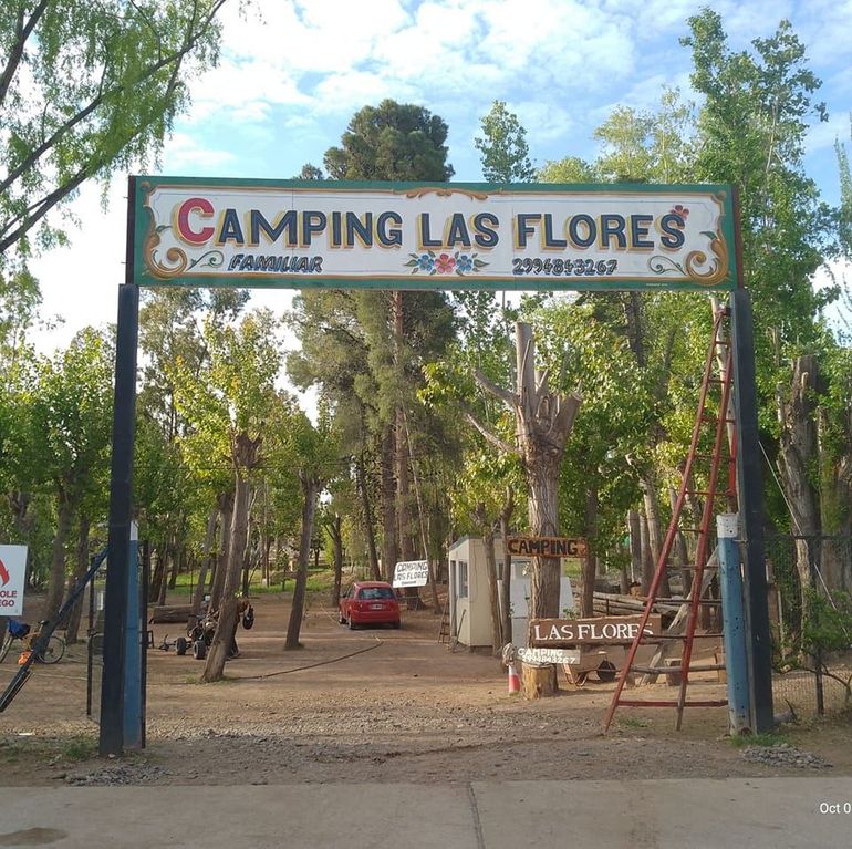 A 88 kilómetros de la capital, en Villa El Chocón el primer camping que aparece es Las Flores. Ubicado en el casco histórico a 200 metros del faro. Hay sanitarios, duchas con agua caliente, parrillas, con luz, es un camping familiar a la medianoche cierra