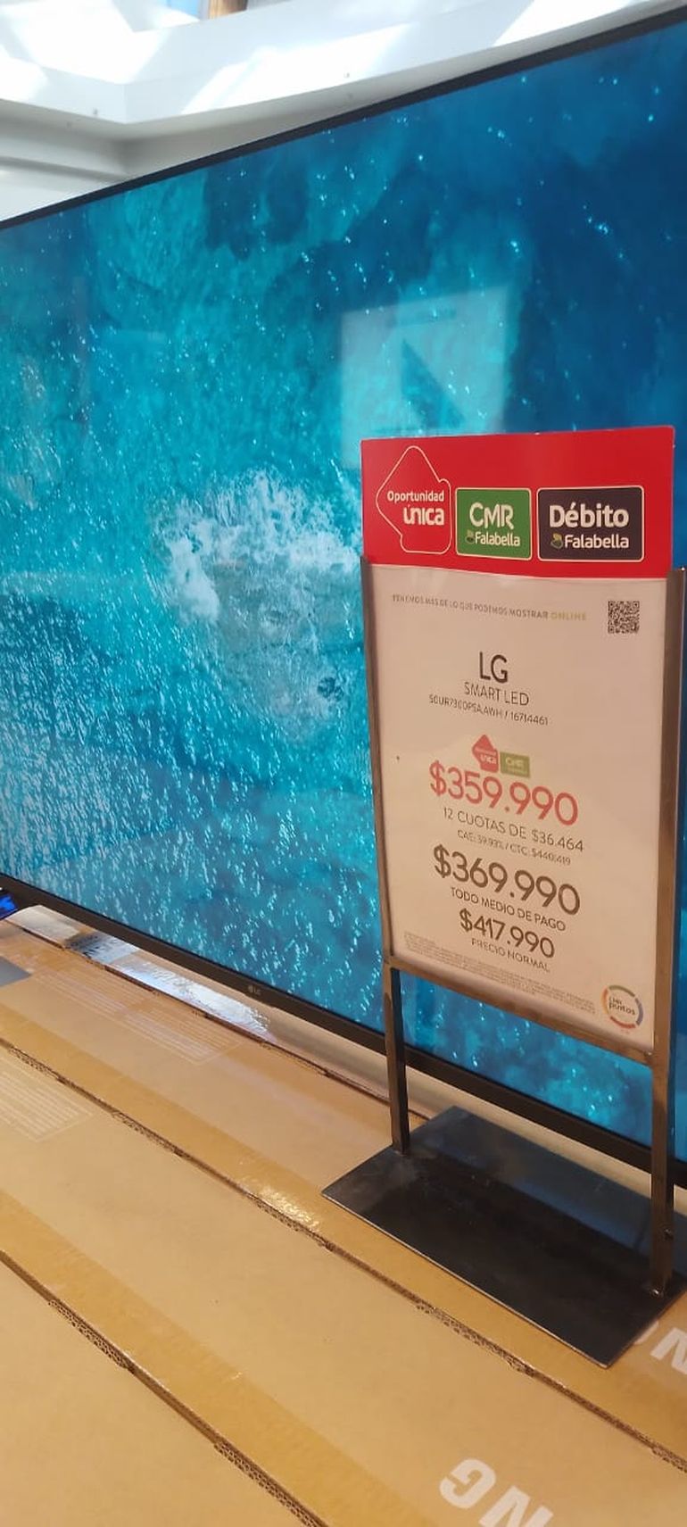 Un televisor smart led marca LG de 50 pulgadas tiene un valor de 369.999 pesos chilenos. Hay que estar atento a los carteles de ofertas porque tienen, casi todos, un valor menor, pero que solo se aplica a los ciudadanos chilenos que tienen diferentes tarjetas de promociones que ofrecen las tiendas.