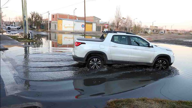 El agua cubre toda una intersección. Denuncian que pasa cada vez que se rompe un caño en esa zona de la capital neuquina.