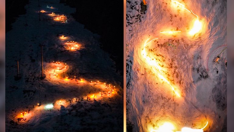 Durante algunos minutos, la nieve volvió a iluminarse y se tiñó de tonos ocres, mientras más de 50 deportistas profesionales y aficionados, junto a instructores, se deslizaron por una de las laderas con sus esquíes y dos antorchas en cada mano.