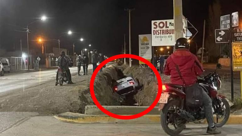 Una escena de película se vivió en la esquina de Saturnino Franco y Circunvalación, en el límite entre los barrios Antártida Argentina y Parque Industrial. Es que un auto terminó volcado dentro del desagüe que está en la zona por una maniobra peligrosa.
