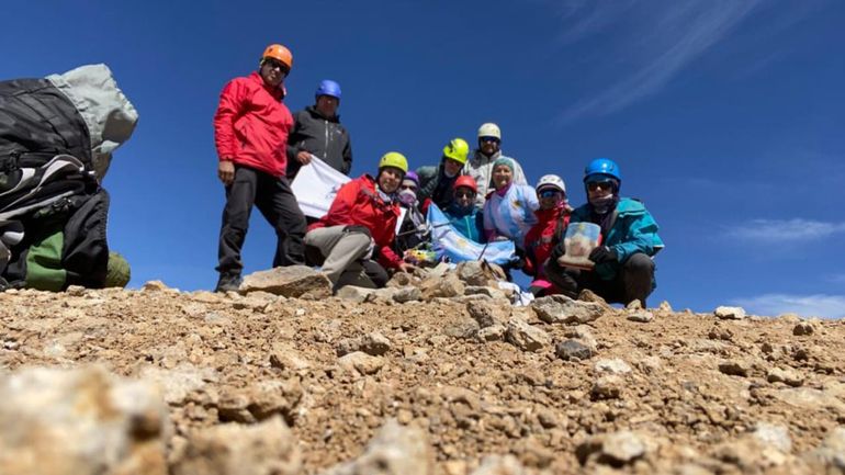 "Fue una cosa mágica que no vamos a olvidar nunca. Estar ahí, en medio de la montaña y ser campeones", dijo Alejandra Parada, la chosmalense que ayudó a un grupo de ocho neuquinos a subir el Domuyo y llegar hasta la cima. Ella y el guía responsable del grupo, Beto Fuentes, con 87 cumbres en el "techo de la Patagonia".