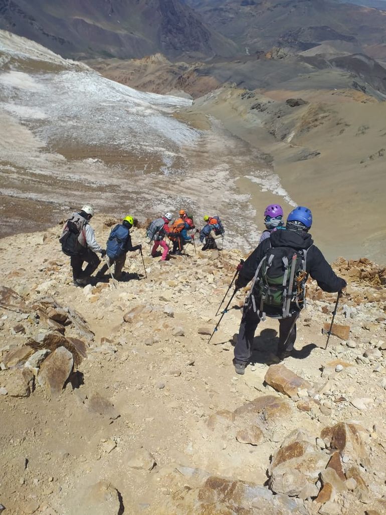 "No había nadie. Ni el Ejército estaba, se habían ido todos. Nosotros, nada más. Después llegaron otros chicos para hacer otro ascenso", contó la guía a LMNeuquén. Ella iba atrás, cerrando el grupo, para cuidar a la gente durante el ascenso y el descenso. En el otro extremo, Beto Fuentes; y lograron que todos pudieran llegar y llegar bien. "Eso fue un golazo, como ganar otro campeonato. La alegría máxima", dijo Parada.