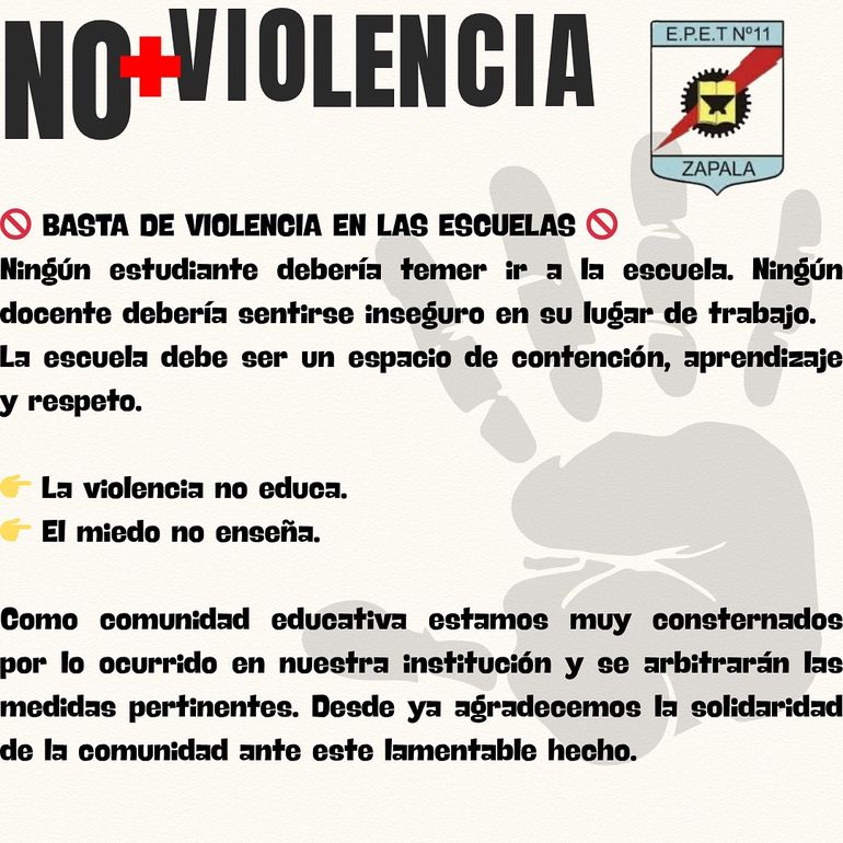 El director recalcó el repudio de todo hecho de violencia y reclamó poder "trabajar tranquilos". "Queremos educar, seguir formando profesionales de bien, pero necesitamos acompañamiento del gobierno", exigió.