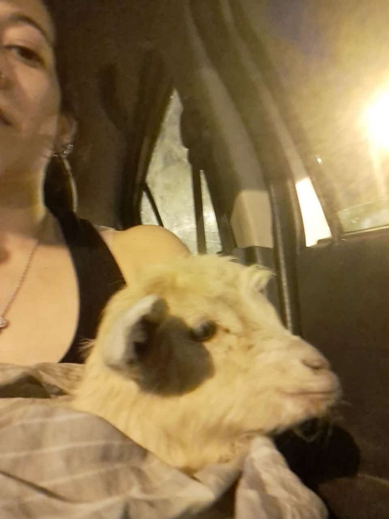 Cerviño contó que cuando llegó a buscarla el animal estaba afuera, pagó lo acordado y se la llevó. Pero como en su casa no tenía lugar la dejó en lo de su hermana con el compromiso de que le daría tránsito hasta que ella acondicionara su espacio para poder sumar a su familia una chiva.