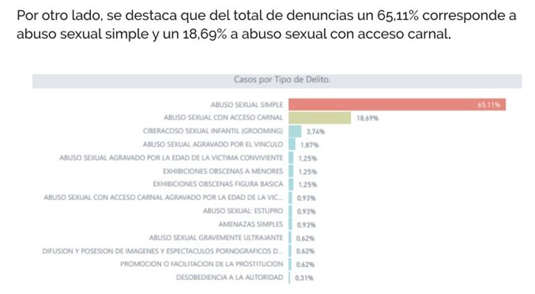 Otro número preocupante es el ingreso de casos en la Unidad Fiscal de Delitos Sexuales. Es que mientras en el primer semestre del 2022, se realizaron unas 310 denuncias, esa cifra ascendió a 319 entre enero y junio de este año. Del total, un 61% corresponde a abuso sexual simple y un 18,69% a abuso sexual con acceso carnal. Solamente 55 casos fueron judicializados.