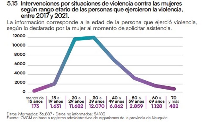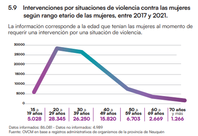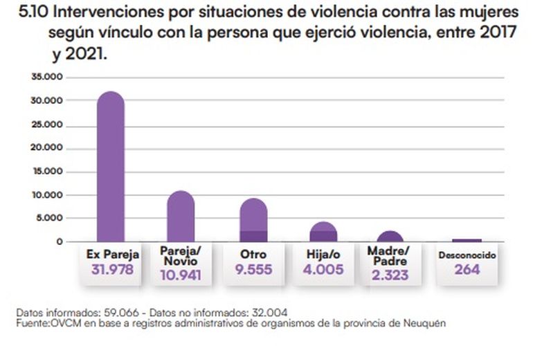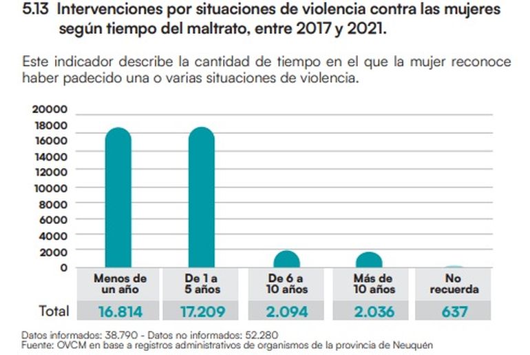 Entre los años 2017 y 2021 unas 35.093 mujeres solicitaron asistencia por situaciones de violencia en la provincia de Neuquén, generando 91.070 intervenciones por parte de organismos estatales. El dato se desprende del Primer Informe Quinquenal Sobre Violencia Contra las Mujeres, elaborado por el Observatorio de Violencia Contra las Mujeres (OVCM) - dependiente de la subsecretaría de las Mujeres del Ministerio de Mujeres y de la Diversidad-, a partir de los registros administrativos generados cuando una mujer de 15 años o más solicita una intervención.