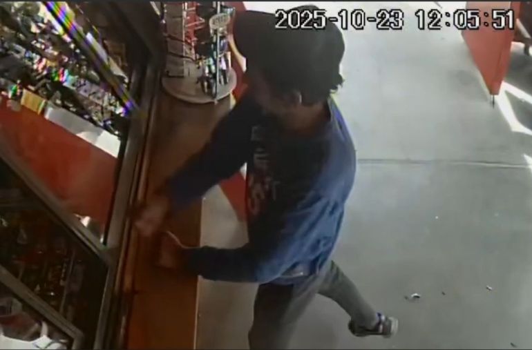 En el video se observa que, a las 12:05, el sujeto se acerca a la ventanilla y entrega un billete de $1.000 para comprar cigarrillos. La empleada le entrega cuatro cigarrillos sueltos, equivalentes al monto, pero ante las quejas del hombre, ella le devuelve el dinero y cierra la ventana.
