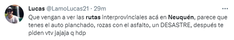El regreso a casa de turistas y locales también tuvo su reflejo inmediato en las redes sociales con diversos comentarios que van del sarcasmo a la bronca por el mal estado que presentan varias rutas. Es que algunos tramos ponen a prueba mucho más que la paciencia, ponen a prueba la vida.