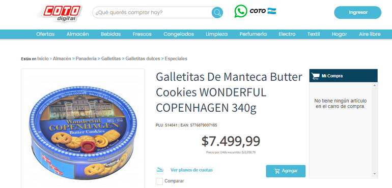 El valor del producto es de $8.999,99. En la versión digital del supermercado también se ofrece la opción de 340 gramos por $7499,99. Durante los primeros días, tuvo precios promocionales que oscilaron entre los $4874,99 y $5849,99. Pero ya no.