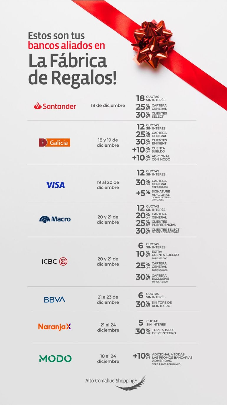 Los mejores descuentos y reintegros, y una financiación espectacular en la Fábrica de Regalos. Elegí tu banco y busca tus pedidos acá: