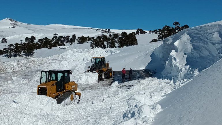 Vialidad Provincial trabaja de manera ardua para poder liberar la nieve acumulada en el Paso Internacional Pino Hachado. "Actualmente se encuentra intransitable desde el centro de la aduana hasta el límite. El clima mejoró el jueves, cuando recién cesaron las nevadas y el viento blanco, sin embargo la acumulación de nieve luego de 6 días seguidos de intensas nevadas es grande y se formaron bardones de hasta 3 metros de altura en algunos sectores", describieron desde el sector de prensa de Vialidad Provincial a LMNeuquén.