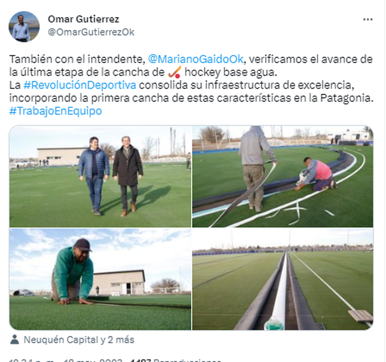 Por su parte, el intendente destacó que esta cancha de hockey base agua brinda “la oportunidad de generar turismo deportivo, de contar con competencias de nivel nacional e internacional en la ciudad de Neuquén, con la jerarquía que necesitaba la ciudad y la provincia, en la Ciudad Deportiva que se ha transformado definitivamente”.