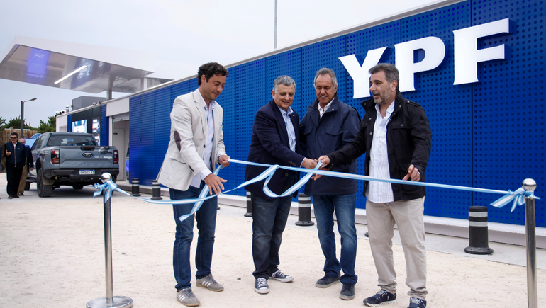 La inauguración contó con la presencia del intendente de Pinamar, Juan Manuel Ibarguren; el presidente y CEO de YPF, Horacio Marín; el vicepresidente Ejecutivo Midstream y Downstream, Mauricio Martín; y otras autoridades del municipio y de la compañía.