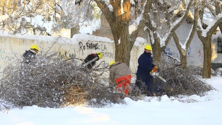 Según detalló el Jefe del Departamento de Defensa Civil de Zapala, Jorge Urrutia, los barrios más afectados de la ciudad son Bella Vista, Bosque Comunal y Zona II. “Los sectores más vulnerables son los más complicados. Hace 15 días empezó con el viento, las lluvias y ahora la nieve. Hemos tenido entre 105 y 110 km/h, y ahora 60 centímetros de nieve. El trabajo por árboles y cables caídos es arduo. No damos abasto”, indicó.