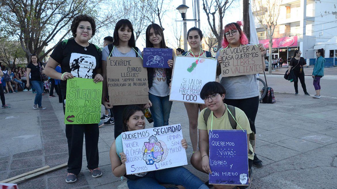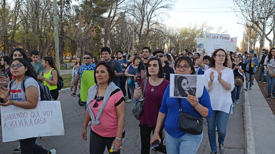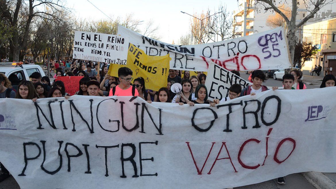 “Quiero ir a estudiar sabiendo que voy a volver a casa”, rezaba uno de los tantos carteles con los que marcharon los estudiantes por las calles céntricas de Plottier, y en otros se podía ver el rostro de Cielo y la consigna “Ni una menos”.