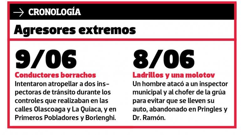 Churrarín asegura que las situaciones de violencia se dan todos los días, tanto en los controles de tránsito y de alcoholemia como en los operativos de venta de alcohol clandestino y de venta ambulante. “De las diez actas de infracción que labra un inspector a la mañana y que está presente la persona que la cometió, una o dos piden disculpas o aceptan que se equivocaron. El resto siempre se justifica, porque dejó el auto mal estacionado o en doble fila”, comenta.