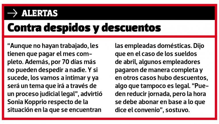 "Les estamos diciendo a las compañeras que exijan las medidas de seguridad e higiene. Lo que pasa es que las ponen en un aprieto, porque necesitan trabajar", advirtió.