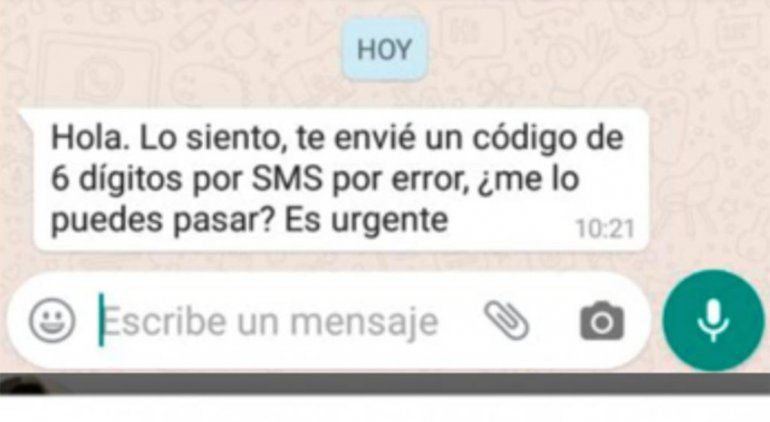 La nueva modalidad de engaño que emplean los hackers es muy sencilla, simplemente buscan que el usuario haga una verificación de su número utilizando su dispositivo, así, le llegará un mensaje SMS con un código de seis dígitos. Luego, el hacker se pondrá en contacto con el usuario haciéndose pasar por una persona que se equivocó, como pasa en muchos casos, diciendo que por error envió un código de verificación.