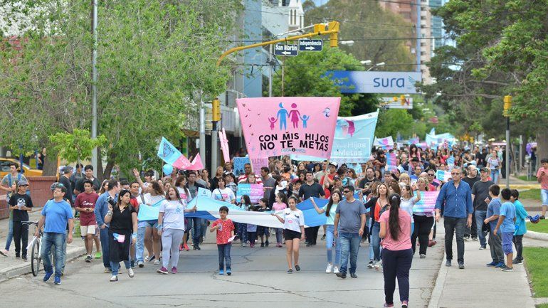 Neuquén. Una nutrida movilización se realizó ayer en el centro de Neuquén en contra de lo que un grupo de padres, madres y docentes denuncia como “ideología de género” y que, según ellos, está presente en los contenidos del Programa Nacional de Educación Sexual Integral (ESI) que se pretende dictar en las escuelas. Bajo el lema “Con mis hijos no te metas” y leyendas provida en oposición a la legalización del aborto, unas tres mil personas se congregaron frente al monumento a San Martín, donde se montó un escenario en el que se expresaron consignas a favor de la educación sexual pero en contra de que “una ideología se transmita” a los niños.