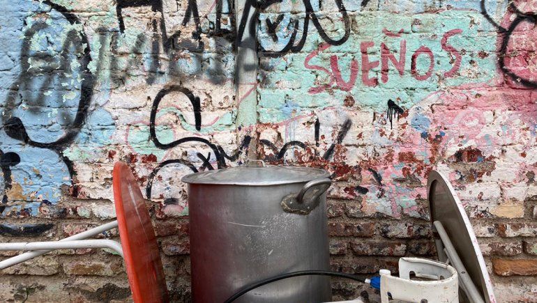 “La olla la prestó una conocida, nosotros compramos el mechero, otra persona nos presentó y se puso con la garrafa. Es todo a donación y amor esto”, describió Fernando, entre la personas que se fueron acercando con su taper preguntando cuándo podrían retirar su ración.