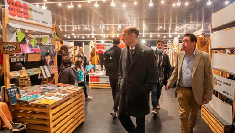 Junto al ministro de las Culturas, Marcelo Colonna, el mandatario provincial recorrió el evento que comenzó este jueves y se extenderá hasta el domingo.
