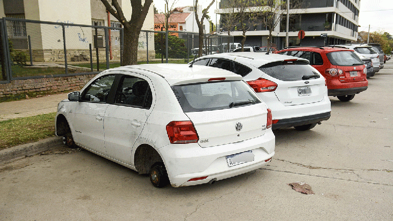El propietario de un Ford Fiesta azul salió de su casa, en cercanías a calles Pinar y Entre Ríos del barrio Santa Genoveva, y se encontró con la triste noticia de que delincuentes le habían robado las ruedas traseras de su auto.