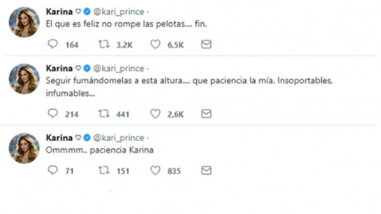 La red social Twitter fue otra vez escenario de un duro intercambio entre Karina, la Princesita, y las hijas de Diego Maradona. Es que tanto la cantante como Giannina han sido pareja del actual jugador del Manchester City, Sergio Agüero.
