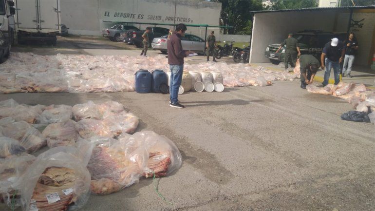 Según las primeras informaciones, se trata de una carga estimada en unos 10 mil kilos, entre los 377 costillares de carne vacuna, cien kilos de carne caprina y 500 de menudencias. El cargamento estaba oculto en un semirremolque en el que se transportaban materiales de construcción.