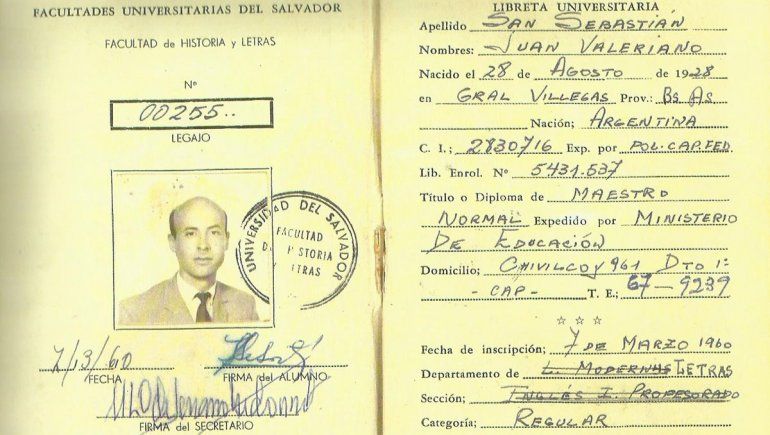 Adjuntamos la Libreta de su vida universitaria conservada por su mamá.
