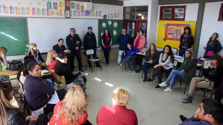 En la reunión la respuesta que dio el comisario Sergio Peucón fue la de confirmar dos efectivos policiales todo el día en la puerta de la escuela, intensificar los rondines con el móvil policial y volver a reunirse en una semana para ver los avances de la situación.
