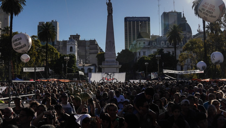 La convocatoria, que comenzó a las 16:00 horas, superó las expectativas de los organizadores. Organizaciones de Derechos Humanos, movimientos sociales y familias autoconvocadas colmaron el histórico paseo frente a la Casa Rosada.
