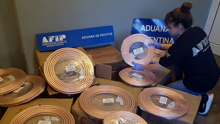 Tras ello, los agentes aduaneros verificaron el contenido de las 11 cajas y constataron la presencia de 70 rollos de caños de cobre —comúnmente usados para refrigeración—, todos de diferente extensión y grosor. El valor estimado de la mercadería asciende a $6.260.000.