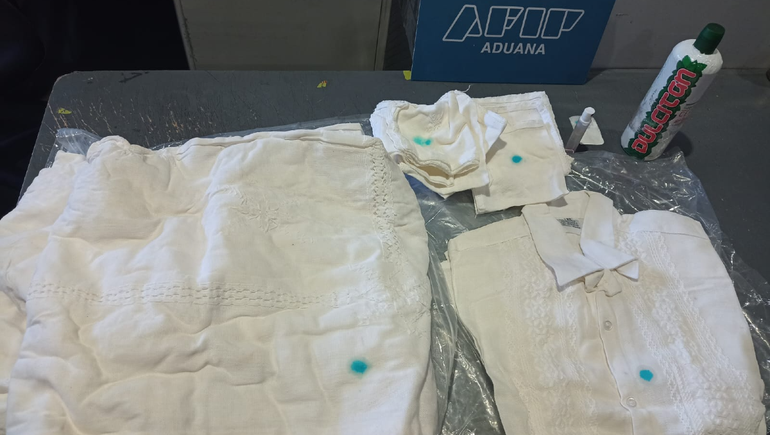 A su vez, la Aduana desarticuló un intento de contrabando de más de 3 kg de cocaína que iba rumbo a Nueva Zelanda: la sustancia se encontraba dentro de un envío postal en forma líquida, impregnada en ropa y camuflada dentro de un frasco de edulcorante.