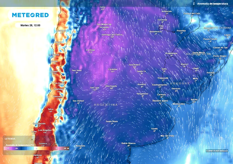 "El ingreso de aire frío será particularmente notorio sobre el área pampeana y la región cuyana, donde se prevé la aparición de heladas débiles a moderadas", precisó Meteored. Sin embargo, las últimas proyecciones indican que el fenómeno quedaría más acotado al sudoeste bonaerense y a La Pampa, mientras que en el resto del país las temperaturas se mantendrán por encima de los valores críticos.